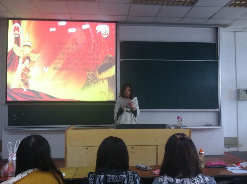 全国政协十二届一次会议和全国人大十二届一次会议于2013年3月在北京胜利召开,为深入学习“两会”精神,引导学生关心、关注国家大事,加强学生历史使命感和社会责任感,启发学生独立思考,积极实践,星空影院 11级本科生团总支采取多种形式,灵活安排时间,积极组织学生探讨“两会”内容,学习“两会”精神。