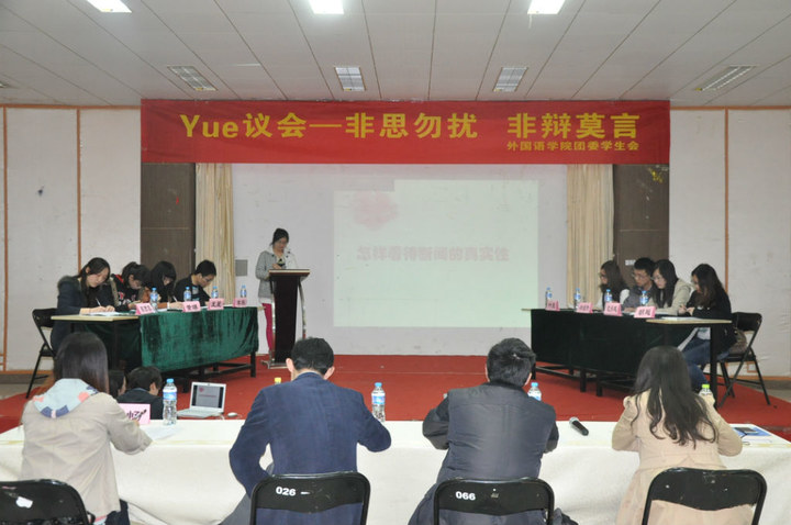 4月1日,星空影院 在将军路校区艺术中心多功能厅举办了学院首届“Yue”议会。学院英语系副主任王孝存老师、学生处事务科科长张跃作为评委参加了此次会议。
