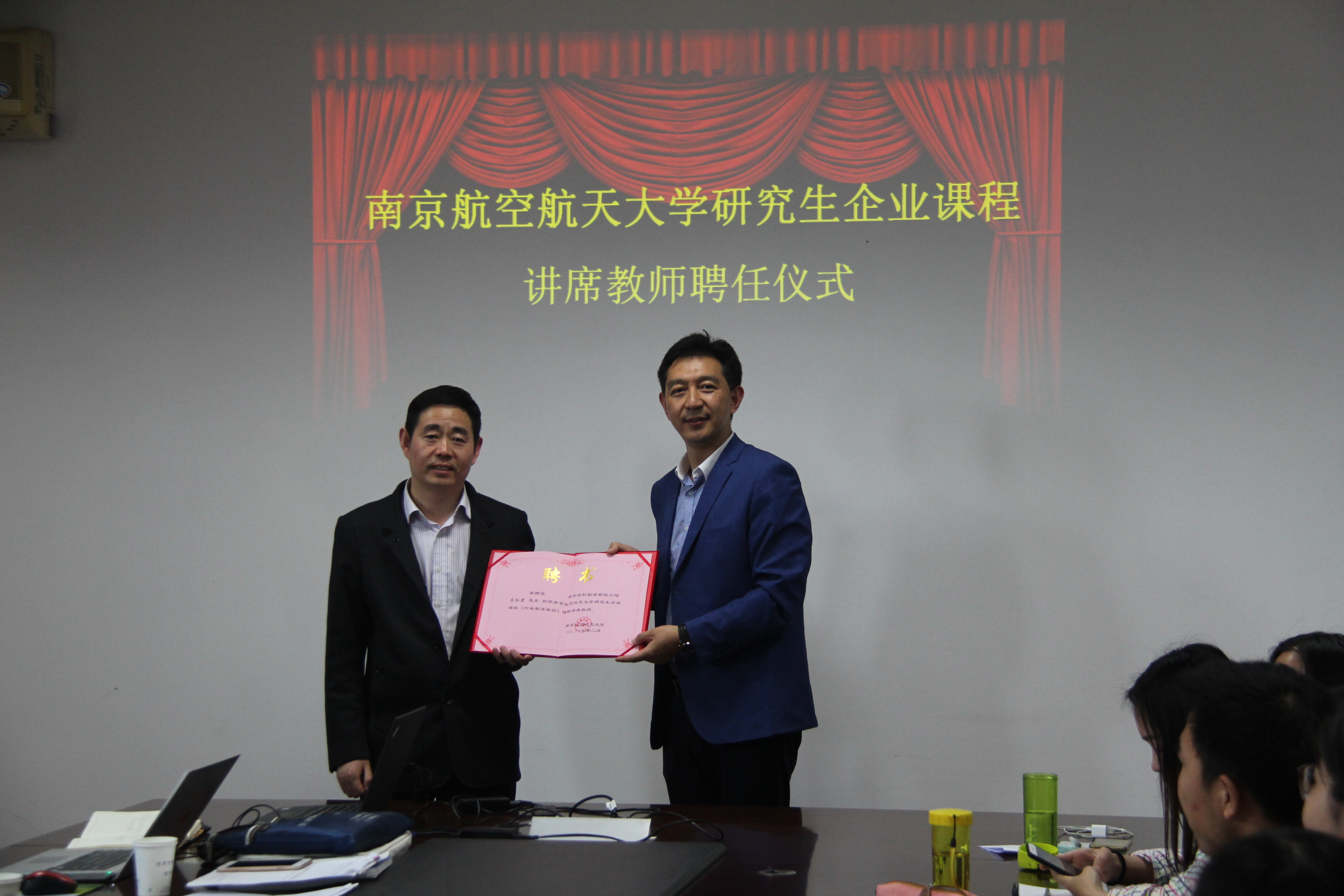 2017年4月24日下午,星空影院 “行业翻译实训”课程系列讲座拉开序幕。学院邀请瑞科翻译公司左仁君总经理为英语和日语专业MTI方向研究生作了一场精彩纷呈的讲座。讲座正式开始之前,星空影院 副院长徐以中教授为左仁君总经理颁发了企业课程讲席教师聘书。