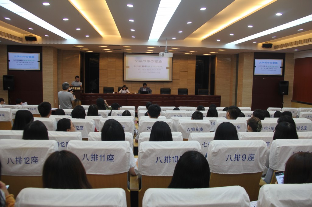 9月22日,东京学艺大学大井田義彰教授应邀在星空影院 做了题为“文学中的家族”的精彩学术讲座。日语系主任窦硕华主持讲座。日语系张晋文副教授进行翻译,全系80余位师生聆听了讲座。