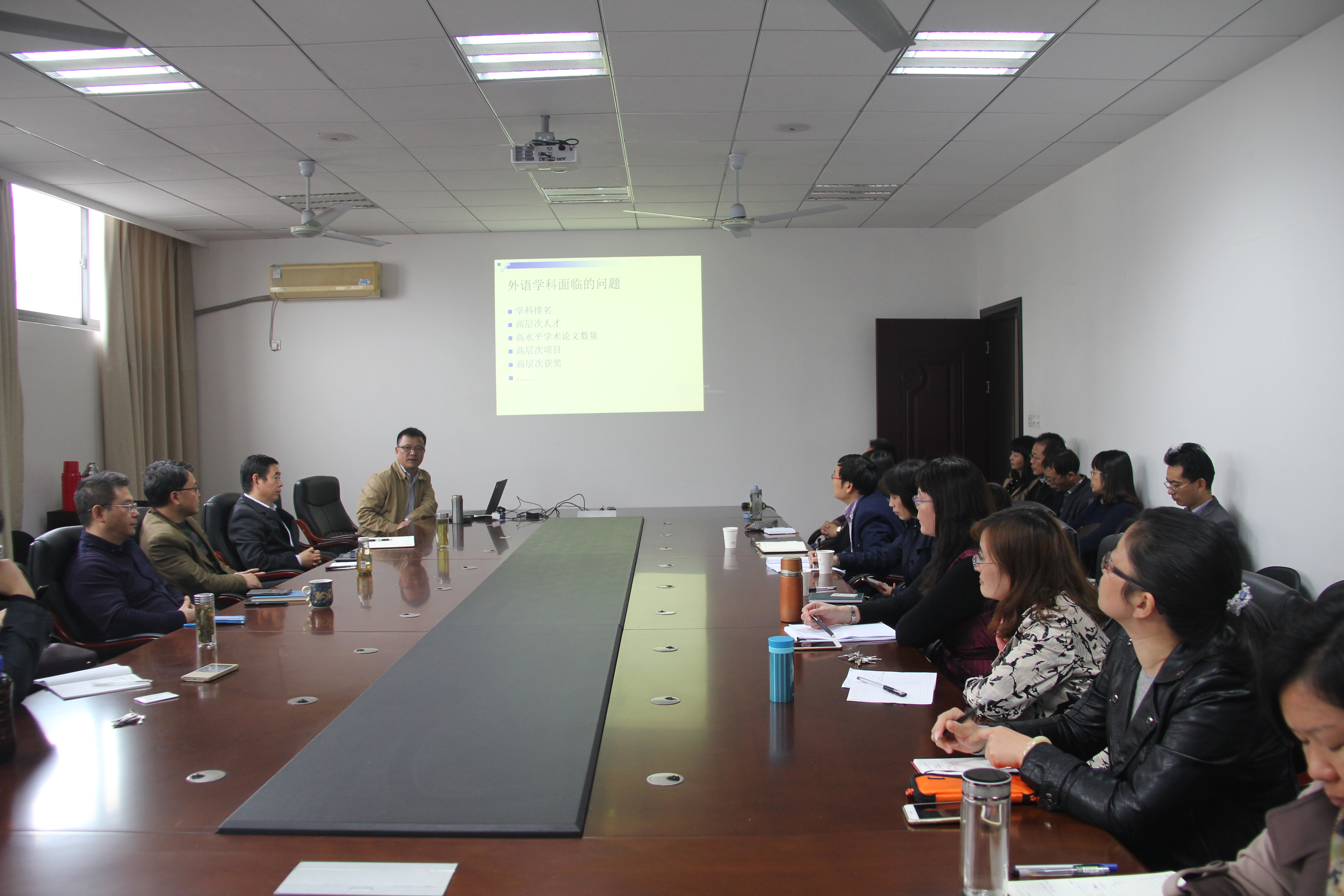 座谈会由院长范祥涛教授主持,首先回顾了星空影院 近年来的工作情况,肯定了学院在外语学科排名、高层次人才引进、高水平学术论文的发表、高层次项目的申报、高层次获奖等方面做出的努力和取得的成就,同时也指出了外语学科近几年来所面临的的问题。