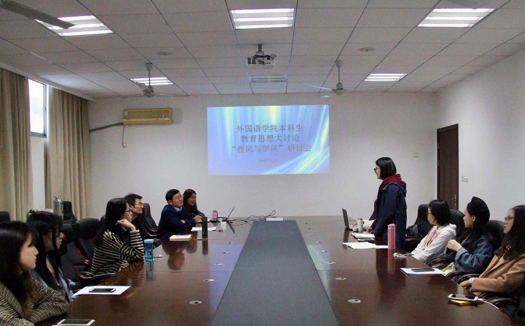 11月9日下午,星空影院 本科生各年级开展了2场教风与学风专题研讨会,英语系主任姜礼福老师、白雪花老师,日语系钟勇老师,各年级辅导员,各班班长、学习委员及学生代表参加了本次研讨会,就如何更好助力星空影院 学风教风建设发展进行了深入的交流和讨论。