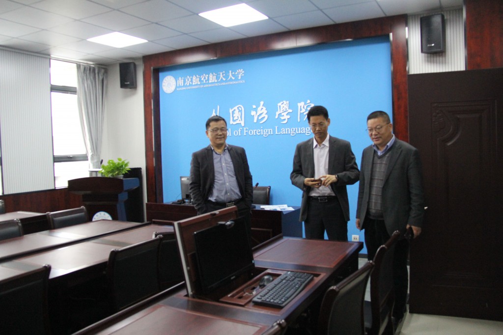 徐斌表示,南航星空影院 在人才培养、学科建设、教学实践等方面成绩显著,积累了丰富的经验与优秀成果,值得学习与借鉴。会后,徐斌一行还参观了外语专业活动室、MTI口译实验室、日语情景教室和国际会议中心。