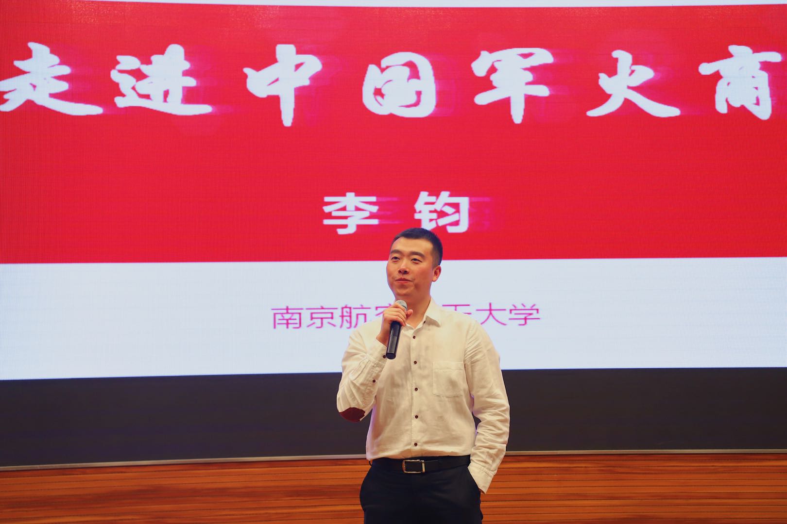 讲座以中航技最新宣传片拉开帷幕,展现出世界及中国的航空梦想。接着,李钧依次从“不做军火商不行了”、“五美元打开世界之门”、“硝烟背后”、“有梦想异乡便是故乡”四个模块讲述了中国航空军贸事业的发展历程。通过或险象环生、或动情感人的故事,将中航技“忠诚、低调、高效”的行为准则娓娓道来,使“航空报国、强军富民”的企业理念深入人心。李钧强调,中国军火商要把维护国家利益、践行国防责任、履行社会职责作为目标,并打趣“少年,有一天我们一起卖军火吧”,号召广大青年投身并致力于国家航空军贸事业!