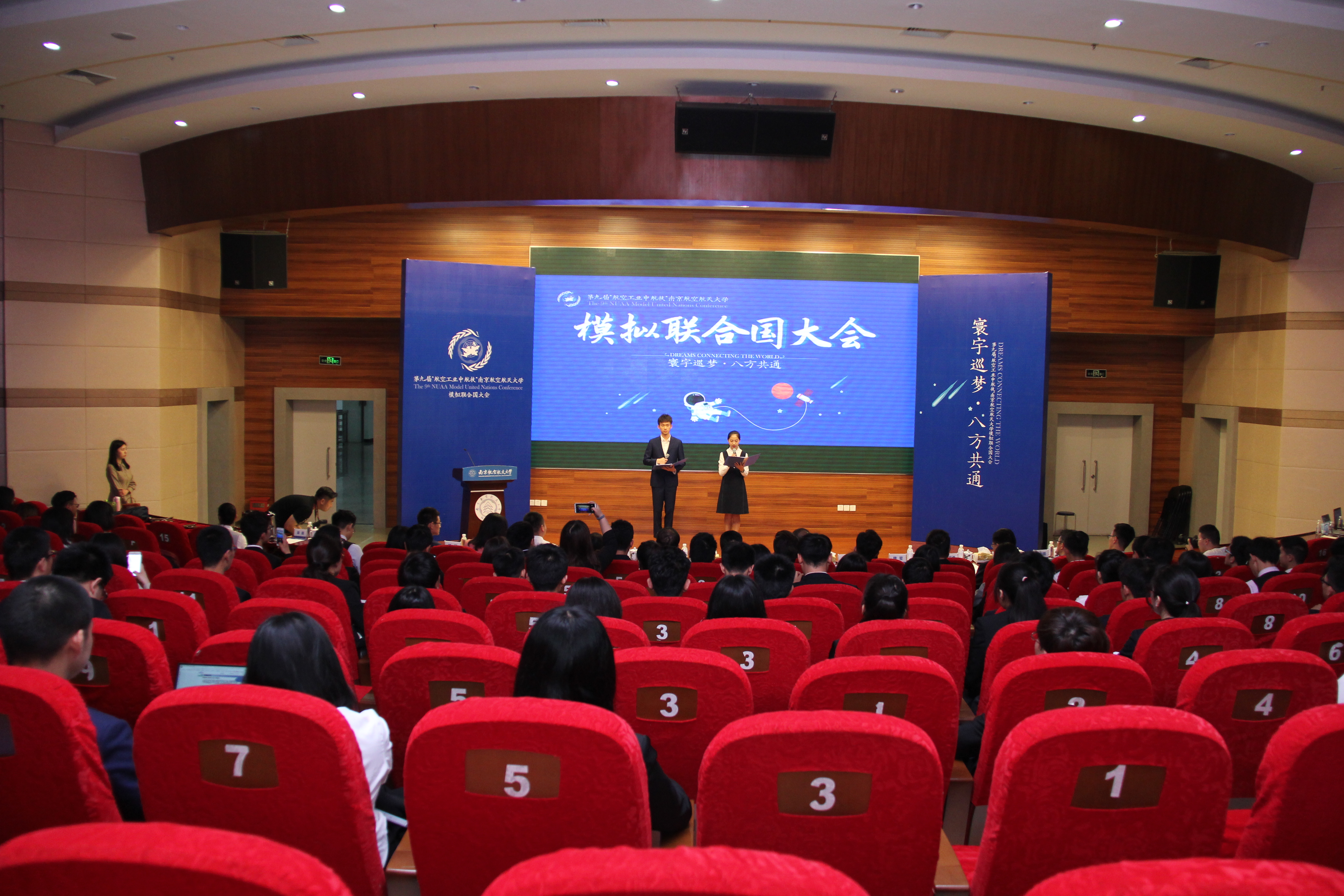 5月10日至12日,“航空工业中航技”第九届星空影院 模拟联合国大会在我校将军路校区成功举行。中国人民大学、香港理工大学、北京外国语大学等来自全国46所学校的246名代表参加了此次大会。中航技进出口有限责任公司党委副书记唐建明,外交部新闻司原司长、外交部前发言人、中国前驻联合国大使沈国放,原总参军谊出版社社长、驻东帝汶使馆武官邵宁,校党委副书记陶勇出席了大会开幕式,参加开幕式的还有中航技进出口有限责任公司人力资源部负责同志以及我校教务处、学生处、研究生院、校团委、星空影院 负责同志。