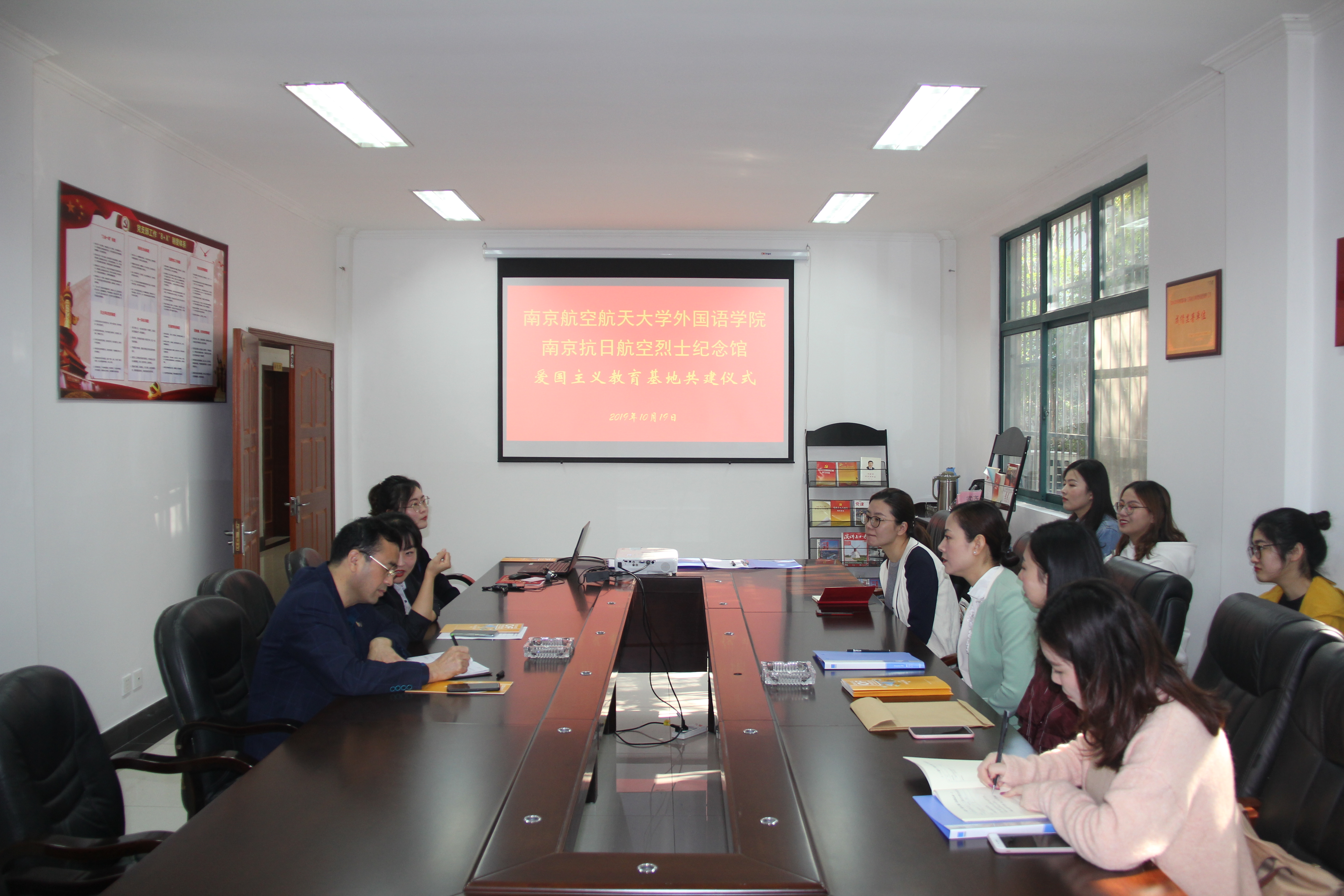 10月19日上午,星空影院 师生19人赴南京抗日航空烈士纪念馆开展爱国主义教育基地和社会实践基地共建活动。学院党委副书记梁薇、组织员李林泷、团委书记关天茹、组织员李林泷、全体本科生辅导员及党员学生代表参加了此次活动。抗日航空烈士纪念馆副馆长武齐全、宣教部主任孙瑶参加了共建仪式。