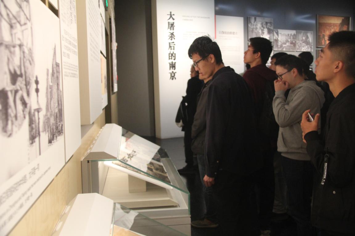 随后,师生们进入史料陈列厅参观。在“日军侵华暴行”、“14年的艰苦抗战”、“胜利大受降”、“正义的审判”、“珍爱和平开创未来”五个展厅中,大量珍贵的历史照片、实物和影像资料陈列在眼前,讲述着这场长达40多天的人类浩劫。面对如此真实可触的历史资料,同学们心中的情感早已不仅是悲愤,更加思索着如何不让历史的悲剧重演,如何珍惜这来之不易的和平。南京大屠杀是一场中华民族的灾难,是一段刻骨铭心的国耻。在大屠杀纪念馆里,过去的伤痛历历在目,令人惨不忍睹的画面、凝聚民族血泪的文字、万人坑里的累累白骨,都揭露出侵华日军惨绝人寰的暴行。幸存者们的证言透露出的无助、恐惧、愤恨、抗争,也在警示后人落后就要挨打、勿忘国耻、奋发图强。