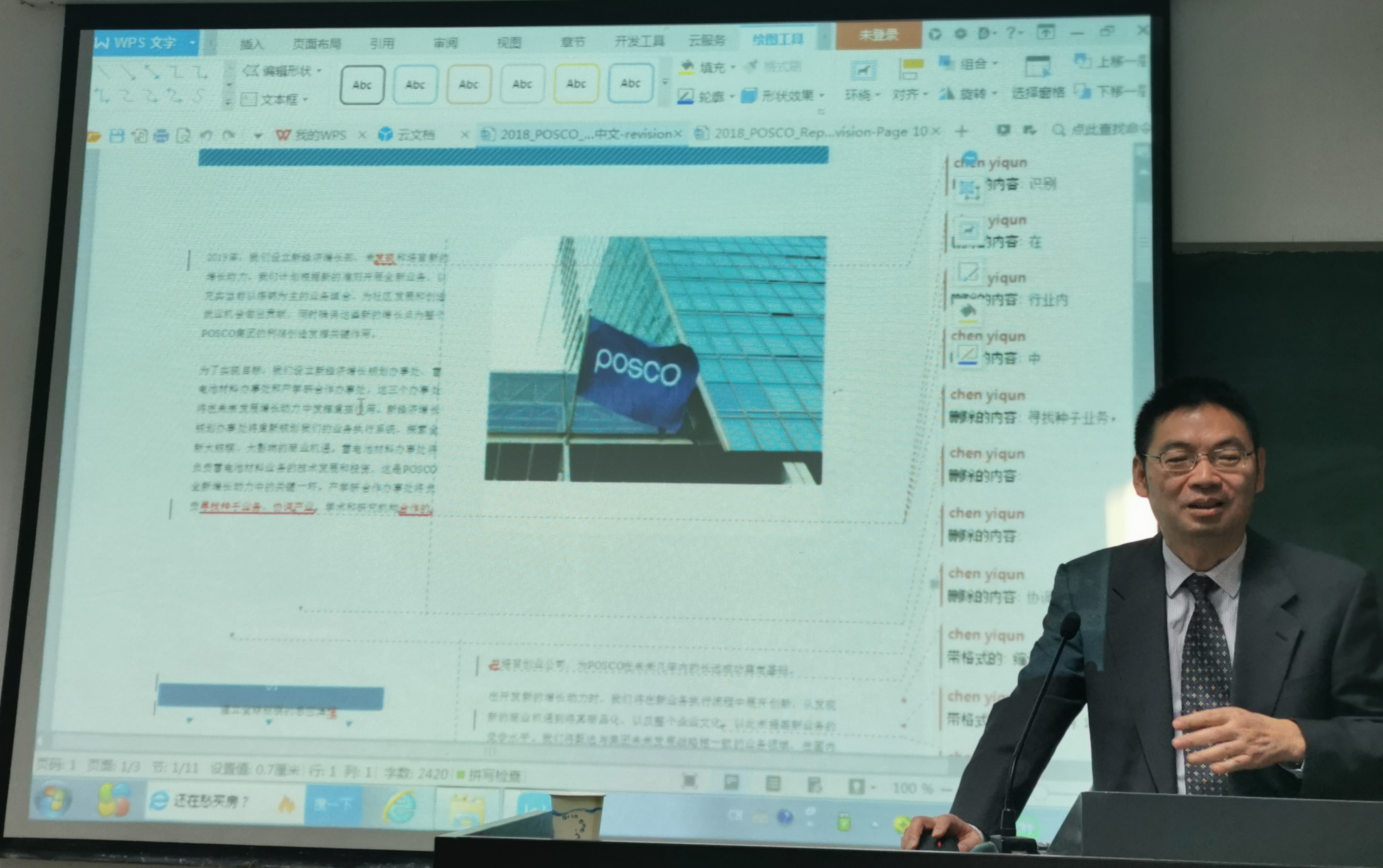 最后,陈益群先生从汉译英、英译汉、阅读体会三个方面给与会师生带来了一场精彩的报告。陈经理分别以“江苏铁路介绍”和“宝钢解说词”为载体,展示了文章中难处理的词语及句子,让听众在感叹“翻译之难”的同时,也学习到了一些思路和方法,更体验到了完成任务后的喜悦。陈经理总结了自己多年来的汉译英心得,即:“抓住重心,逻辑连线,表达简洁,自成一体”,对翻译实践有很好的指导作用。陈经理还结合自己的阅读经历,讲述了多读书,读好书的重要性。