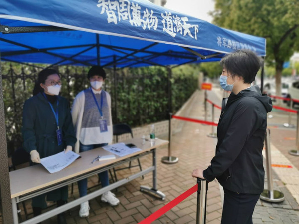 返校第一天,学院党委书记左彤云来到将军路校区北门了解学院学生返校的实时情况,在校门口迎接返校学生,对毕业生们给予关心与慰问,并与现场学工人员一起处理返校学生突发状况。