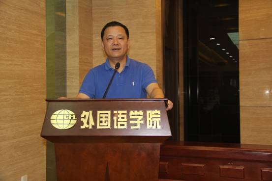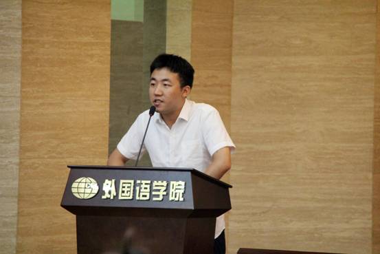 研究生导师代表张立新对新生们表达了殷切地嘱托。张立新从教育的四个层次谈起,提出了要智慧学习,同时强调了作为语言类研究生读书、研究的重要性。
