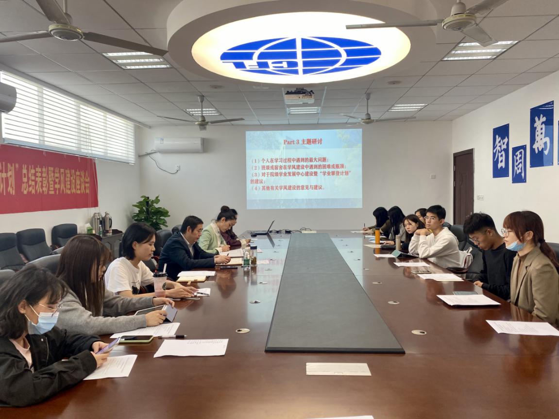 为激发外院学子学业学习主动性,充分听取学院学生对学院学风建设的意见和建议, 11月18日中午,星空影院 在322会议室开展了“学风建设本科生学业攀登计划”总结表彰暨学风建设座谈会。学院副院长徐以中、学院党委副书记梁薇、全体本科生辅导员、2019-2020学年“学业攀登之星”、“星级朋辈学业伴读导师”、各年级学生代表参与了此次座谈会,会议由辅导员盛嘉贤主持。
