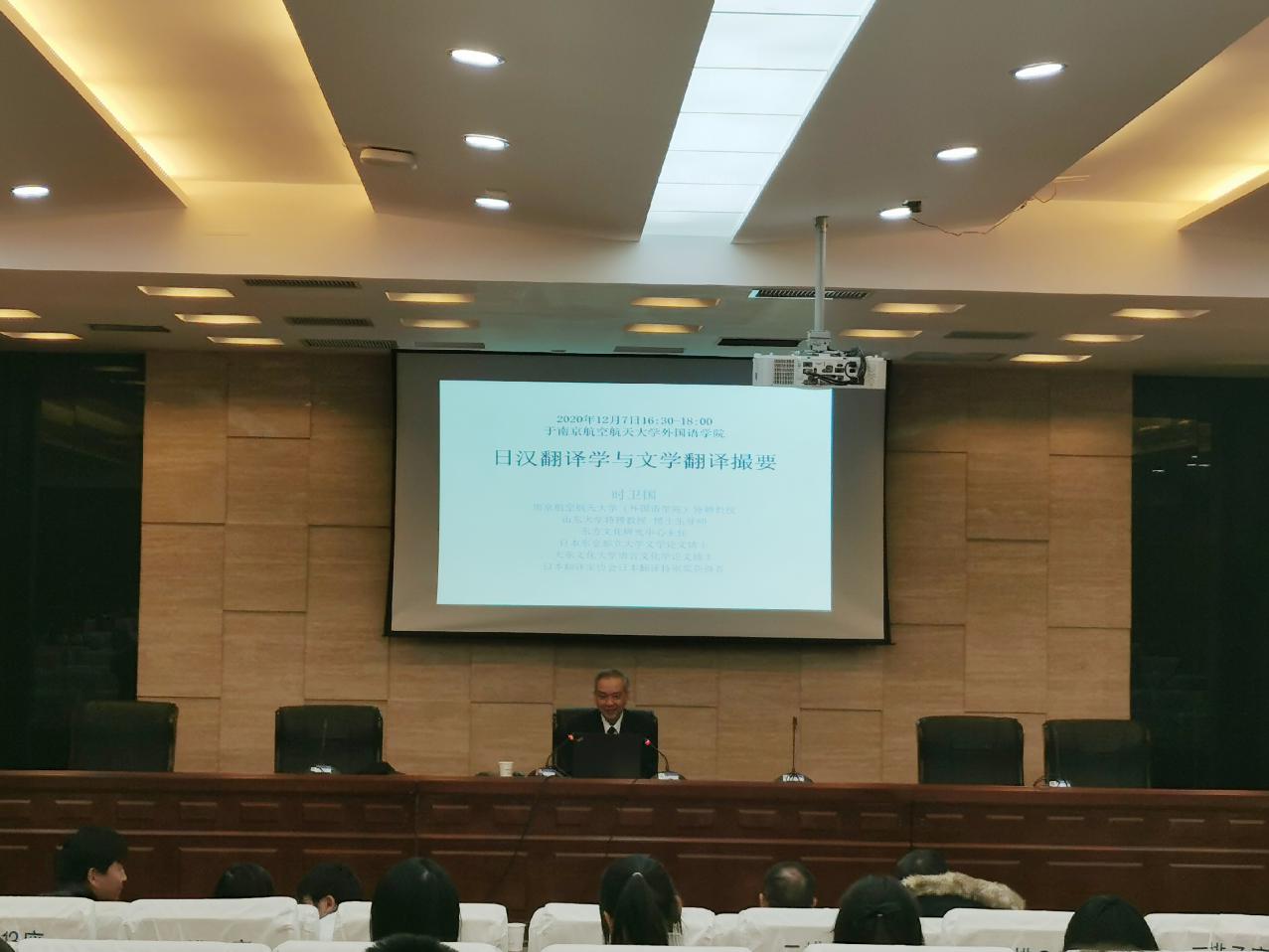 12月7日下午,应星空影院 邀请,山东大学星空影院 兼人文社科青岛研究院特聘教授时卫国教授在国际会议中心举办了题为“日汉翻译学与文学翻译撮要”的学术讲座。星空影院 日语系主任窦硕华老师主持了本次讲座,日语系师生和部分英语专业学生参与了聆听。