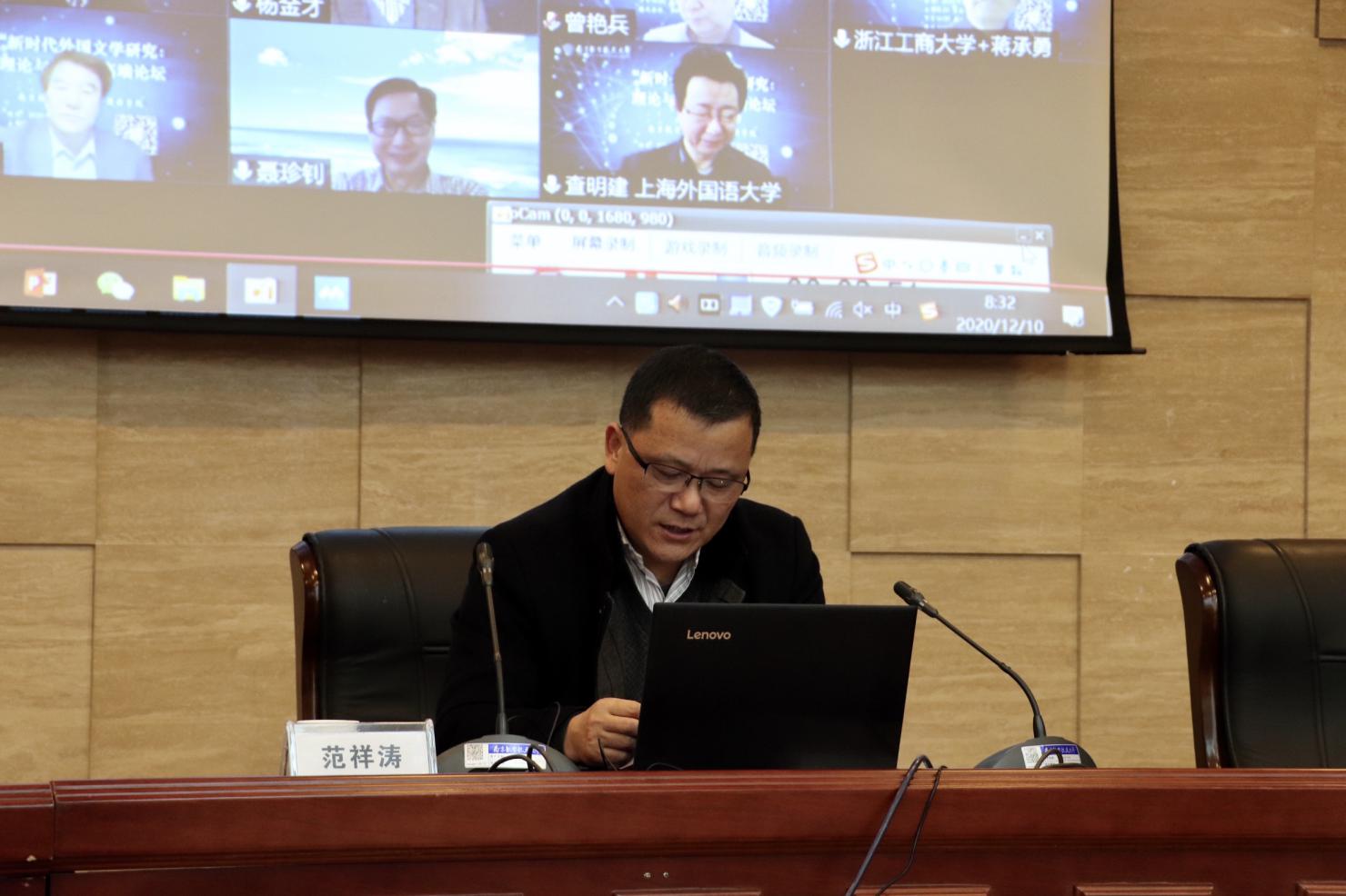 为促进学术交流、助力学科建设,12月10日,星空影院 举办“新时代外国文学研究:理论与阐释”高端论坛。本次论坛由来自上海外国语大学、浙江大学、南京大学、中国人民大学等高校的知名专家领衔主讲,来自全国的学者及师生400余人通过线上和线下的方式参加了本次论坛。论坛开幕式由星空影院 院长范祥涛主持,星空影院 党委常委、副校长宋迎东,全国美国文学研究会副会长、《当代外国文学》主编杨金才教授分别致开幕词。