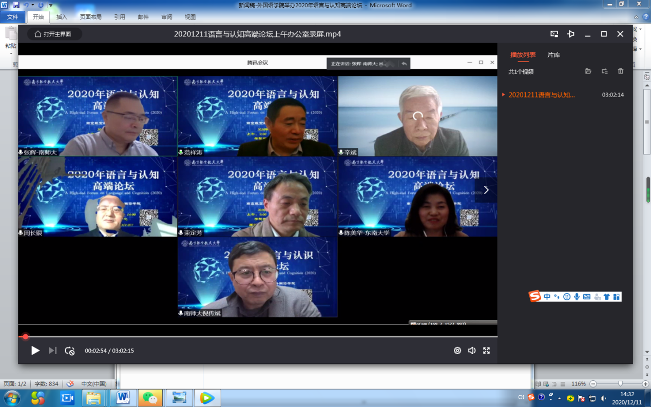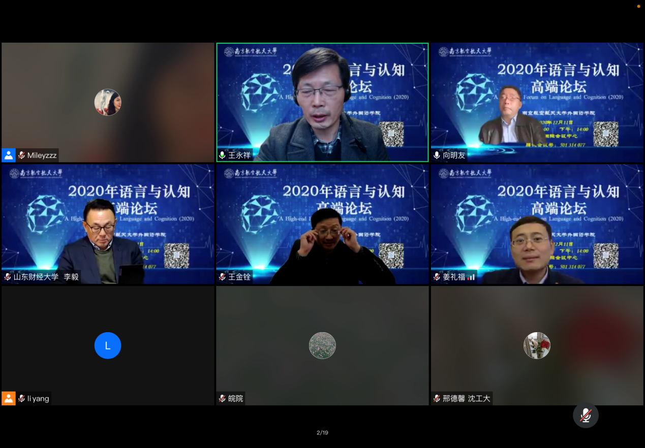 12月11日,2020年语言与认知高端论坛在我校星空影院 国际会议中心举行,论坛报告由上海外国语大学、南京大学等国内知名高校的语言学专家领衔主讲,来自全国的学者及师生近300人通过线下或线上方式参加了本次论坛。
