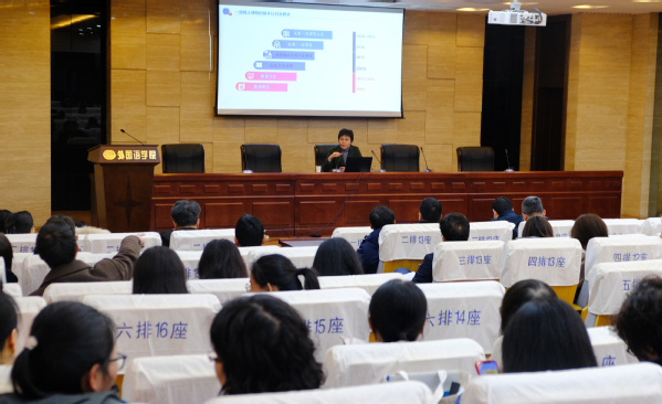 袁俊红主任从一流线上课程的基本认识及要求、建设应用规范、应用案例等方面进行了阐述,对慕课的特点、教学元素、教学设计等进行了具体的介绍,讲座内容丰富、主题突出,有助于激发教师建设一流在线课程和合作创新的热情。