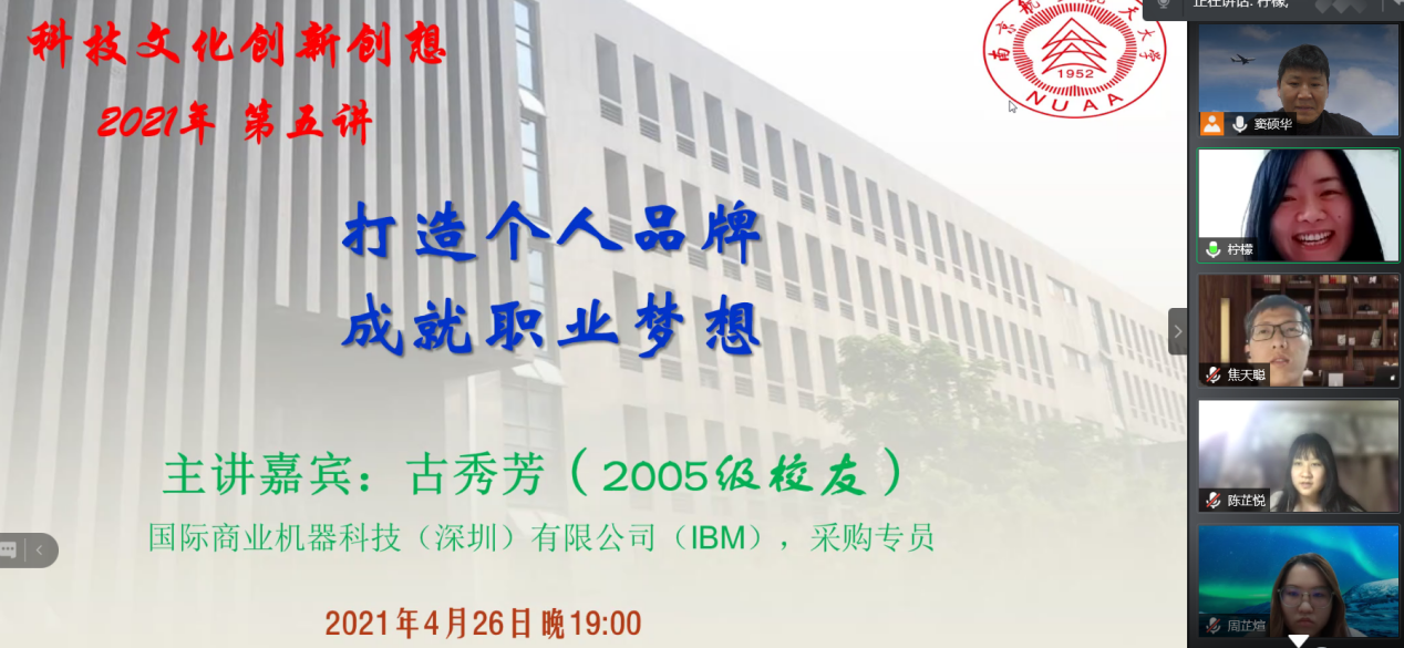 4月26日晚上7:00,星空影院 日语系科技文化创新创想课程第五讲通过腾讯会议模式开启,主题为《打造个人品牌,成就职业梦想》,主讲人为05级日语系校友古秀芳,现任国际商业机器科技(深圳)有限公司(IBM)采购专员。