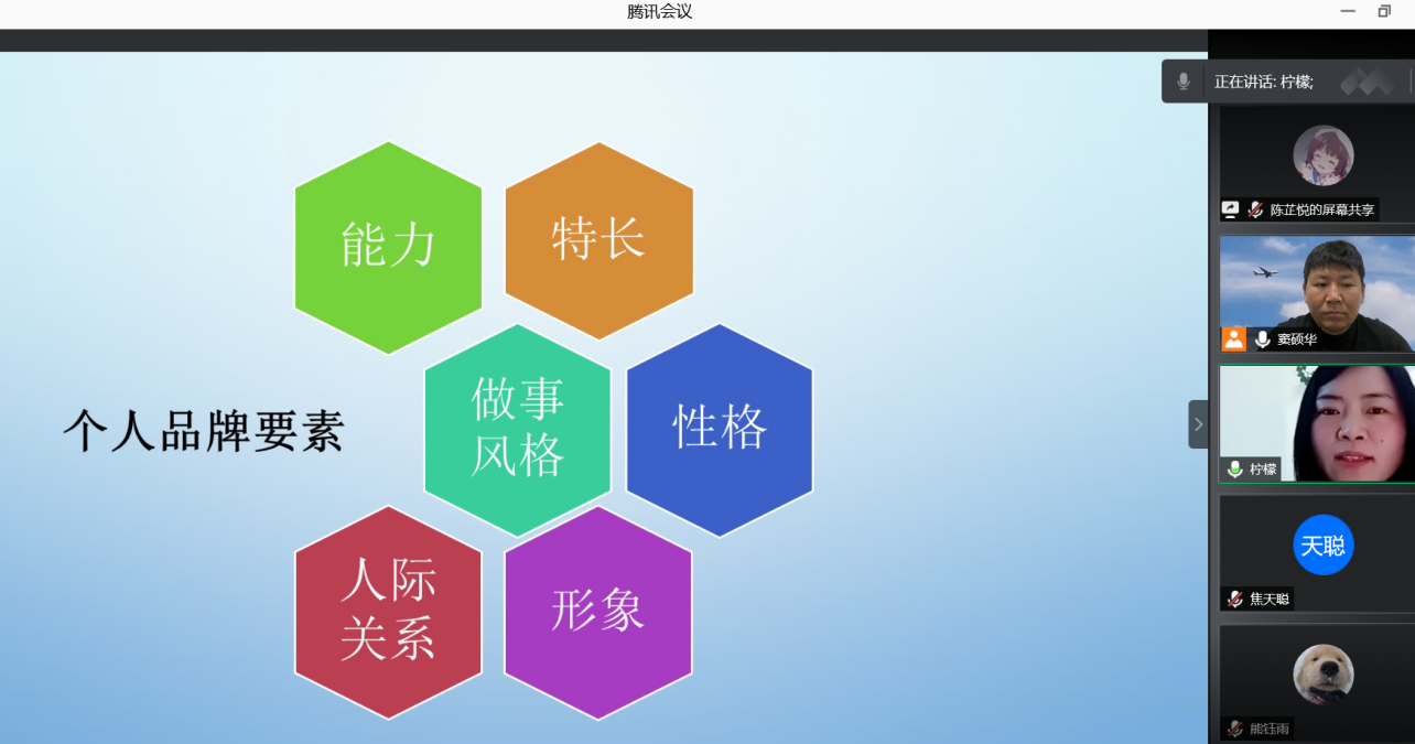 古秀芳将个人品牌的要素总结为6个方面,分别为:能力、特长、做事风格、性格、人际关系和形象。在职场中这6个部分环环相扣,缺一不可。古秀芳从不一样的视角为同学们解读了工作所需要的技能,不单单是熟练使用office等办公工具,更在于充分发挥自身特长,让领导同事看到你的闪光点,即打响“个人品牌”。讲座最后,古秀芳提出,职场“个人品牌”并非人设,保持真实才是最好的。