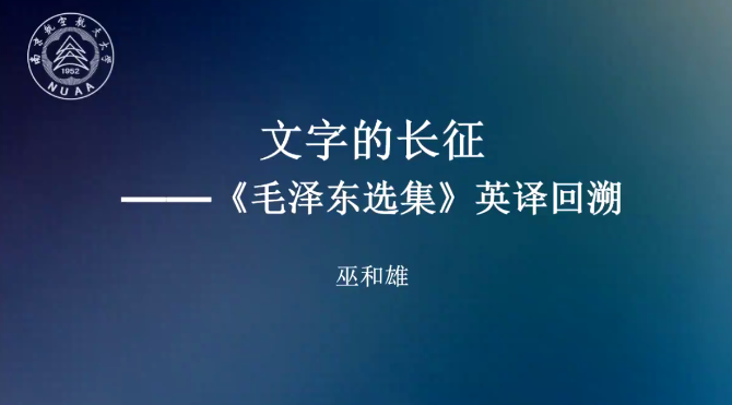 巫和雄主要从《毛泽东选集》翻译背景、英译历程、译者构成、翻译流程等方面系统介绍了《毛泽东选集》翻译的整体概况。通过对整个翻译历程、译员构成等的分析,巫老师认为,《毛泽东选集》翻译凝绝了几代人的心血,因此用“文字的长征”作为讲座标题恰如其分。巫老师认为《毛泽东选集》翻译是中外文化交流和中国政治文献翻译传播的历史见证,代表了国内汉译英水平的顶峰,这也成为《邓小平文选》《江泽民文选》和《习近平谈治国理政》翻译的标杆。巫老师对译者高超的翻译水准、严谨的翻译态度、精细的翻译流程的介绍,令听众深受触动。