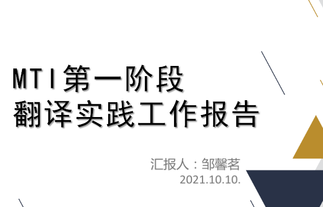 随后,邹馨茗就第一阶段MTI专业实践审查情况进行工作汇报,包含MTI专业实践质检办法、评估办法以及第一阶段翻译实践成果及问题反思。