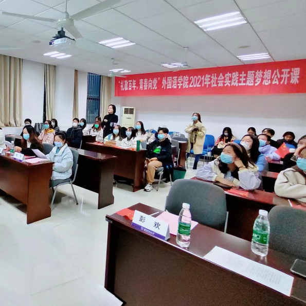 11月8日下午,“礼敬百年,青春向党”星空影院 2021年社会实践主题梦想公开课在学院115教室成功举办。本次公开课采用线下和网络直播形式双线进行。星空影院 团委书记李萍、本科生辅导员彭欢,以及2021级本科生参加了此次公开课。