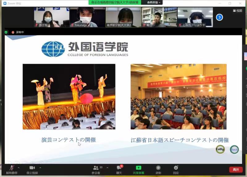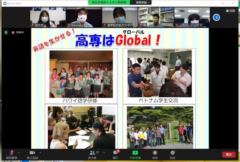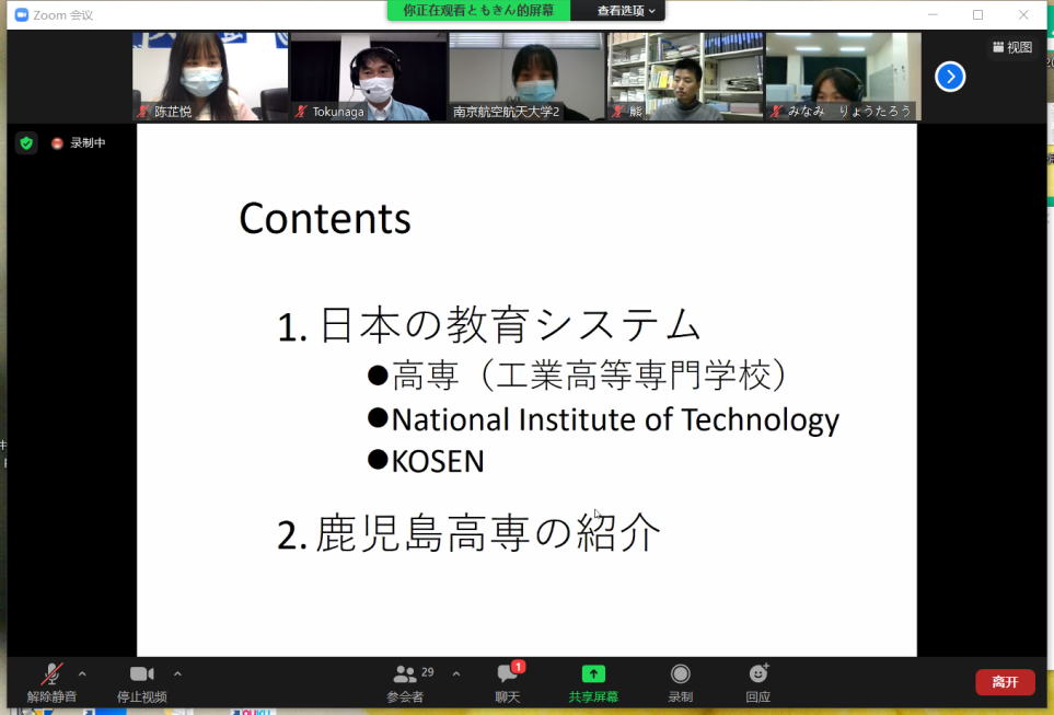 交流会以Zoom在线形式开启,全程使用日语。星空影院 日语系主任窦硕华老师、副主任钟勇老师、人文学院法律系洪骥老师(本校日语系毕业)、日语系研究生、本科生共计12名同学及鹿儿岛高专2名老师、13名同学参加了交流会。