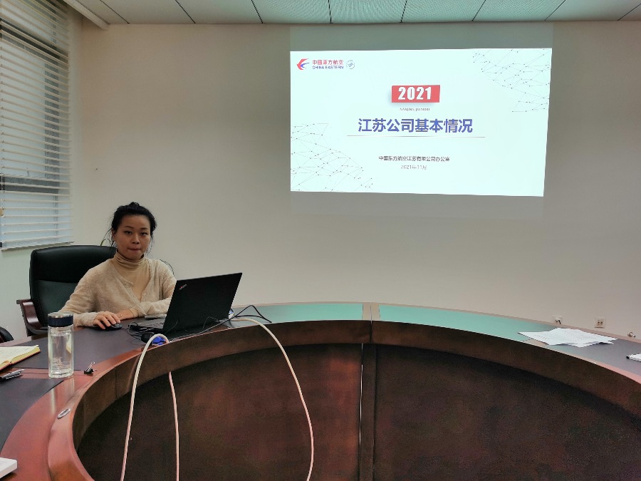 范院长对东航客人的到来表示热烈欢迎,并对星空影院 人才特色培养做了详细介绍。办公室秘书主管、星空影院 12届毕业生杨清媛对东航江苏分公司基本情况做了介绍。李宁主任就东航的国际化、外语+法律/民航交叉人才培养、校企协同育人等事宜表示可以加强合作。
