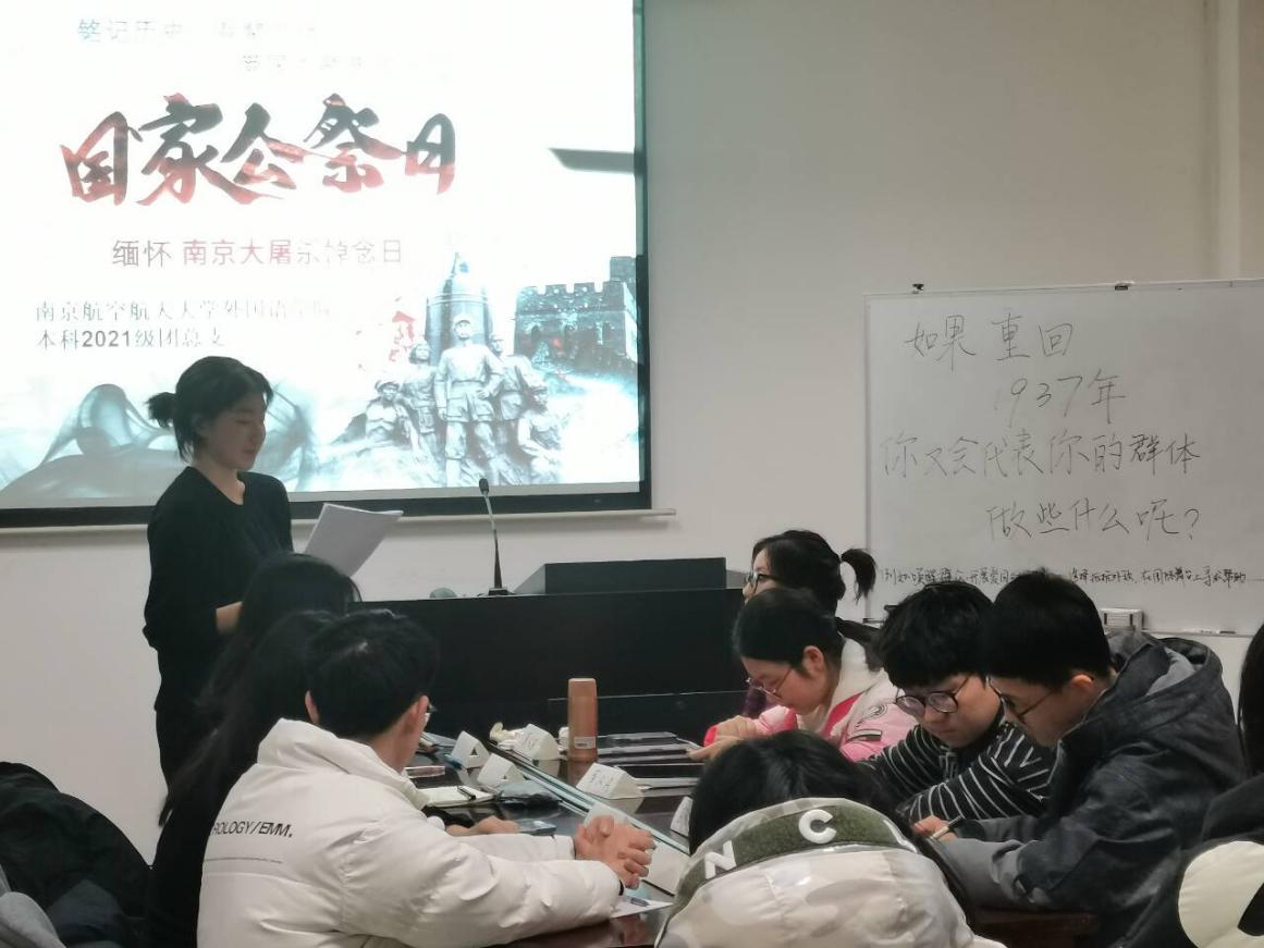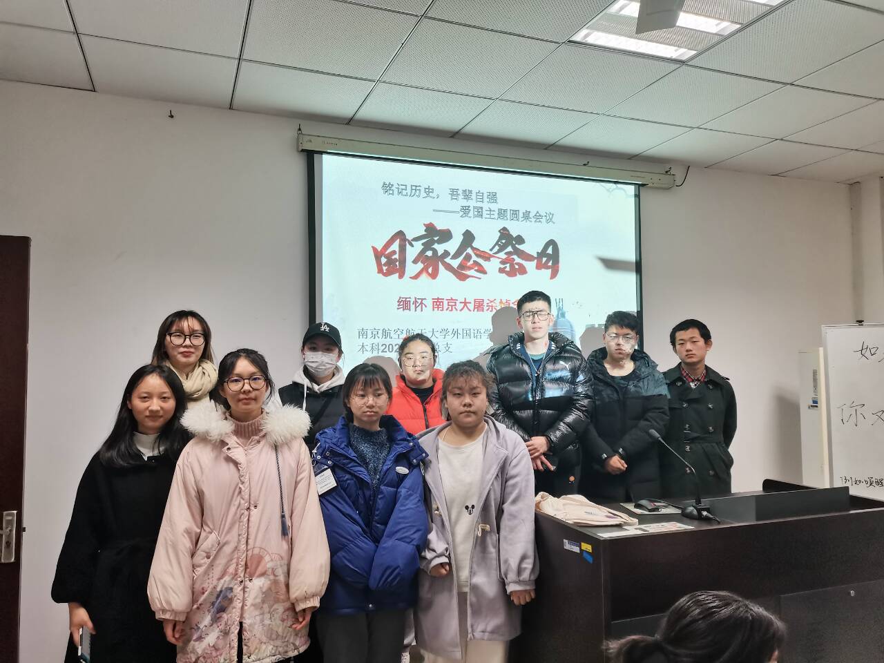 为了缅怀在南京大屠杀中遇难的同胞,唤起青年学子的爱国爱党意识,明确在新时代背景下的使命与责任,12月12日,星空影院 2021级团总支开展了“铭记历史,吾辈自强——爱国主题圆桌会议”团日活动。本次团日活动以团支部为单位,分为两个会场同时进行,一会场由徐玙晗、易邦妮主持,二会场由陈妍莅、刘可主持,全体支部团员参加本次活动。