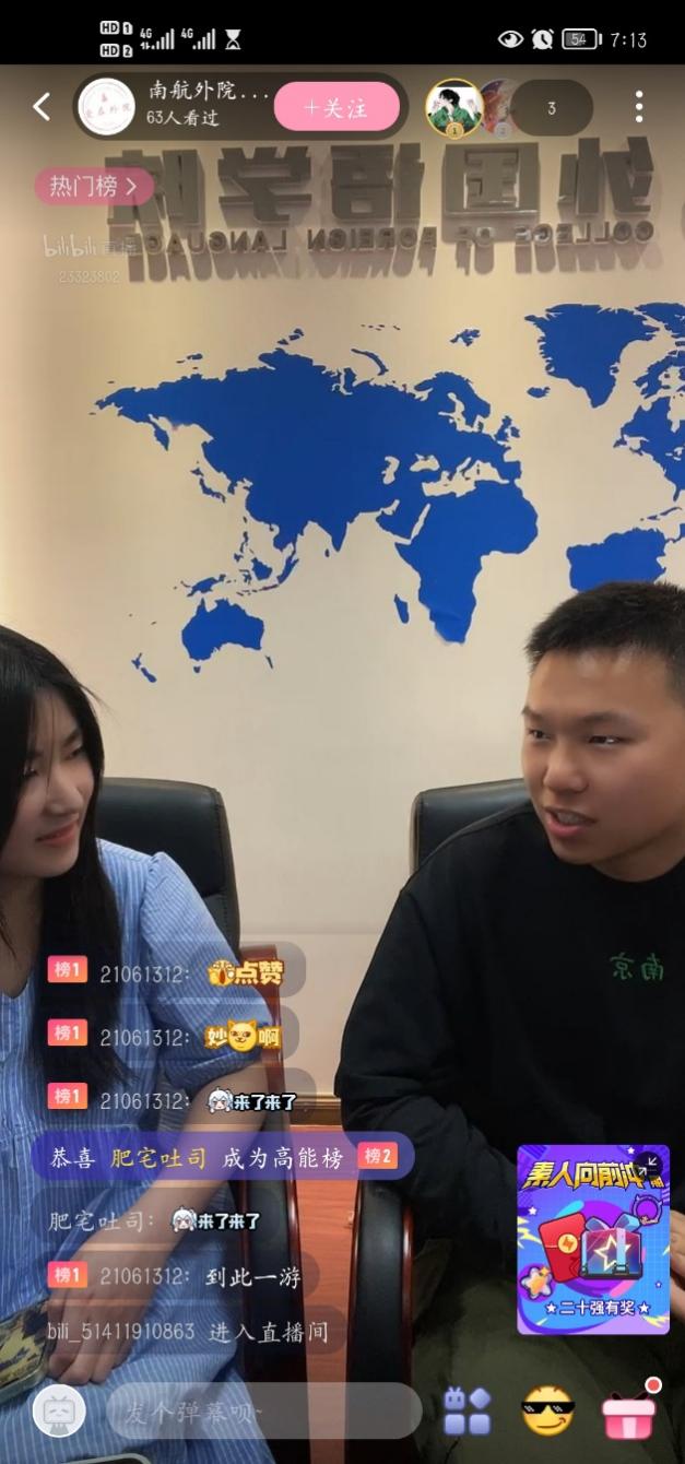 5月3日,青春能量站邀请到曾获中国人民解放军“优秀义务兵”称号、校园丁励志奖学金一等奖的19级本科生孙彦博作为嘉宾,由19级团总支书记魏嘉作为站长,开展了主题为“军营历练,别样的大学生活”的直播访谈。孙彦博向同学们分享了他的军旅生活和转专业经历,为同学们今后的方向选择开拓了思路。