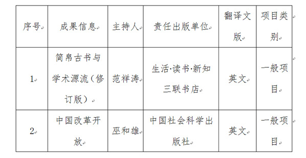 据悉,中华学术外译项目是国家社科基金项目的主要类别之一,主要资助代表中国学术水准、体现中华文化精髓、反映中国学术前沿的学术精品,以外文形式在国外权威出版机构出版并进入国外主流发行传播渠道,旨在发挥国家社科基金的示范引导作用,深化中外学术交流和对话,进一步扩大中国学术的国际影响力,提升国际学术话语权,让世界了解“哲学社会科学中的中国”。