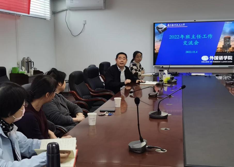 为做好服务育人工作,充分发挥班主任在学生成长成才中的引领作用,11月4日下午,星空影院 在322会议室召开本科生班主任工作交流会。副院长徐以中教授、英语系主任张立新教授、日语系主任窦硕华副教授、英日语系党支部书记钟勇副教授、教学办主任黄潜、各位本科生班主任参加会议。