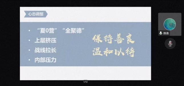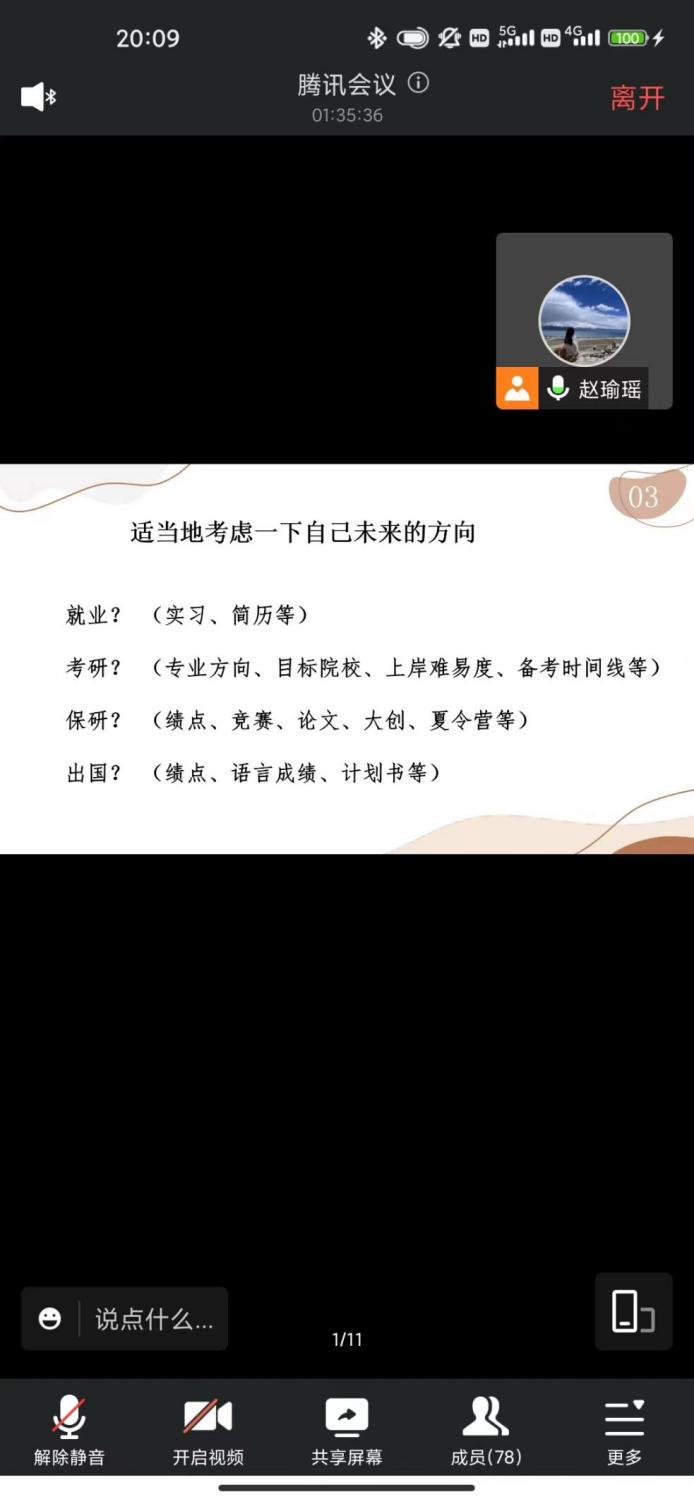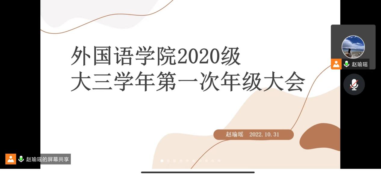 为激发学生学习主动性,回顾总结上一学年的学业成绩,10月31日晚上,星空影院 开展了线上2020级本科生学业分析年级会暨保研分享会,会议由辅导员赵瑜瑶主持。