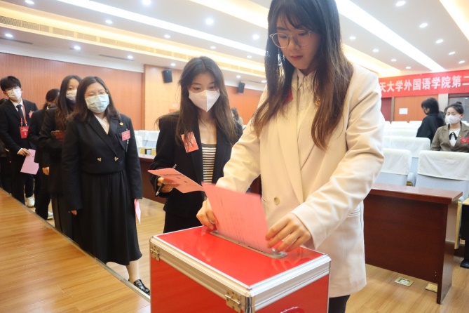 大会通过民主选举,产生了王奕隽、邓彬诚等学院新一届学生会主席团、研究生会主席团成员,王艺菲、王文君等学院新一届学生委员会委员、研究生委员会委员。大会在庄严的校歌声中顺利闭幕。