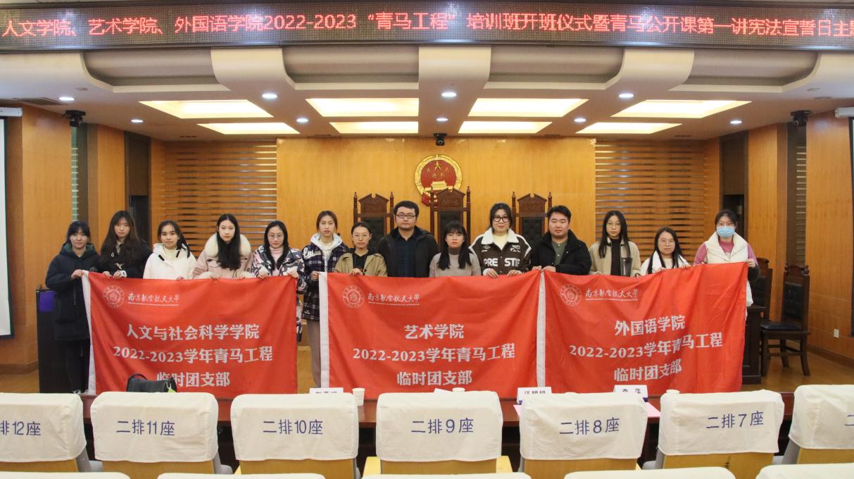 在开班仪式上,赵燕喃进行了动员讲话,指出“青马工程”的开展,归根结底就是要为党培养青年人才,培养具有忠诚的政治品格、浓厚的家国情怀、扎实的理论功底、突出的能力素质的人。随后,三个学院的团委书记分别为各学院青马工程临时团支部授旗。