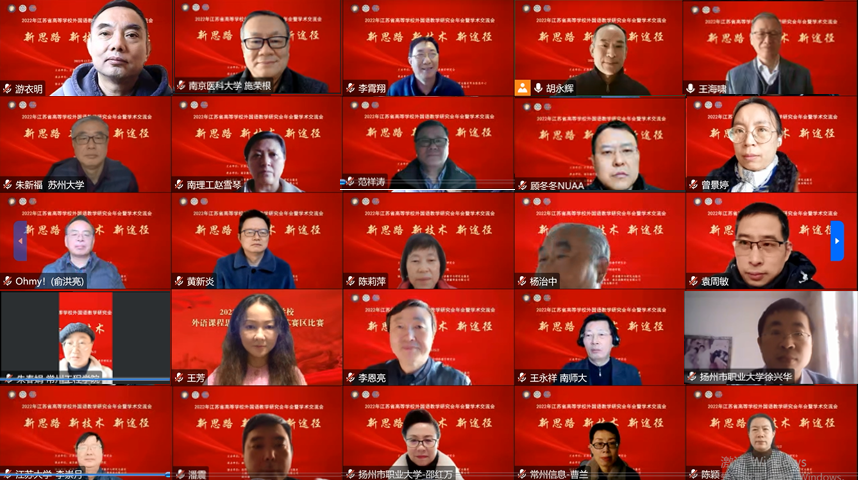 12月25日,主题为“新思路 新技术 新途径”的2022年江苏省高等学校外国语教学研究会年会暨学术交流会通过线上的方式隆重召开。本次会议由江苏省高等学校外国语教学研究会主办、我校星空影院 承办,研究会会员及来自全国的学者师生近百人参加了会议。