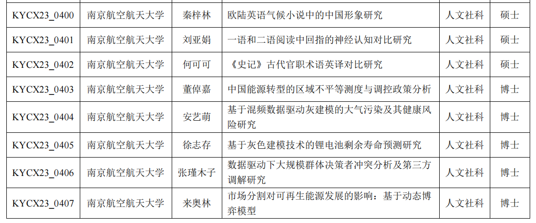 近日,江苏省学位委员会和省教育厅公布2023年江苏省研究生科研与实践创新计划和学位与研究生教育教学改革课题,星空影院