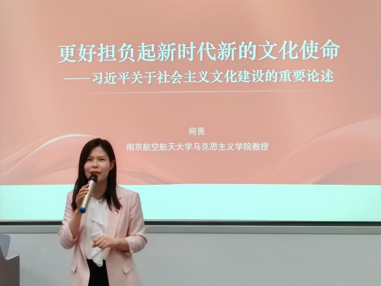 长空学院学生代表张琪茂表示,文化兴则国家兴,文化强则民族强,作为一名青年学生党员,在今后的学习、工作和生活中,将加强对各种社会思潮的辨析,不当旁观者,敢于发声亮剑,善于解疑释惑,守护好马克思主义、中国特色社会主义的坚强前沿阵地。