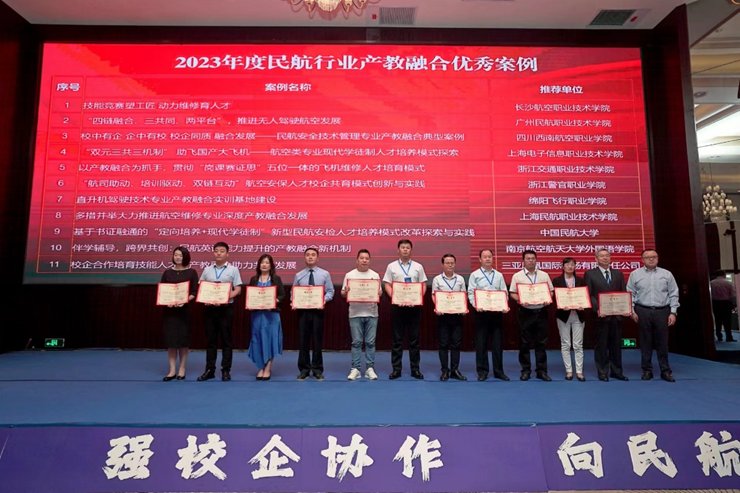 在“第三届民航职业教育培训发展论坛”召开前,中国航空运输协会征集了2023年度民航行业产教融合典型案例。星空影院 报送的案例“伴学辅导,跨界共创:民航英语能力提升的产教融合新机制”荣获“产教融合优秀案例”称号。中国航空运输协会常务副理事长潘亿新为获奖单位颁奖,王孝存代表团队领奖。