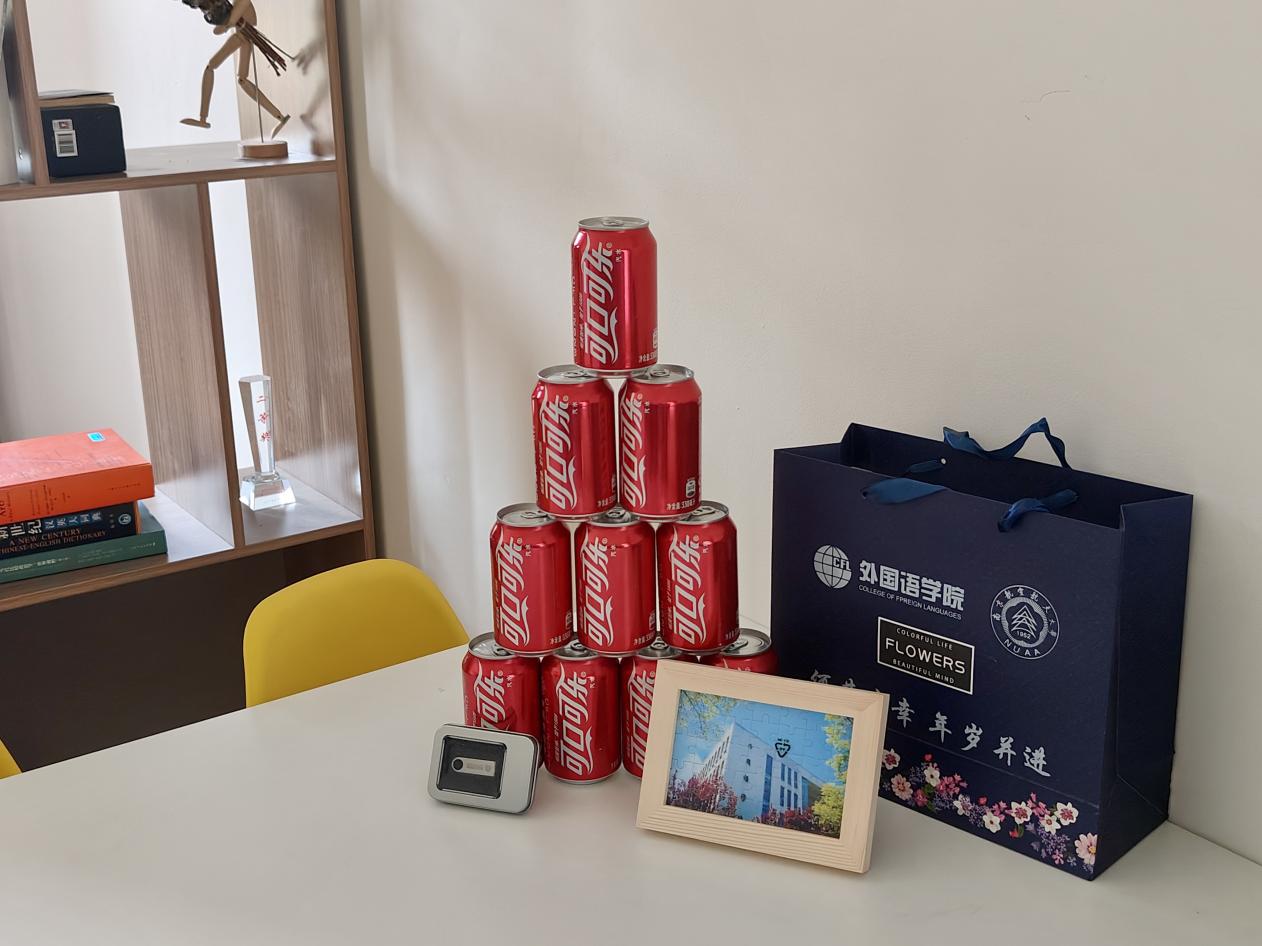 新生大礼包中包含“四重心意”:主题迎新可乐、星空影院 拼图、校园地图、定制款U盘。礼物兼顾美观与实用,也传递了外院师生对全体新生的关心和热情。