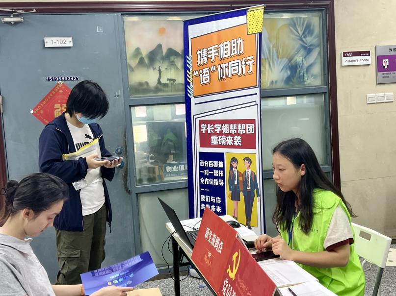 报到台后,志愿者们分工明确,热情满满,高效地帮助新生办理报到流程,收获了新生与家长的由衷称赞。