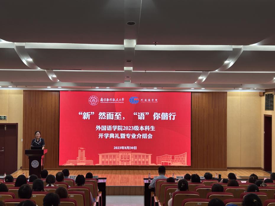 英语系主任张立新鼓励新生以立德树人和服务国家、行业、学业为导向,固本强基、守正创新,在掌握听、说、读、写的语言基础的同时,培养开阔的国际视野与较好的跨学科跨文化沟通合作能力;日语系主任窦硕华以“选择南航日语,开辟精彩人生”为主题,通过数据展示,清晰明了地展现了南航日语在行业内的优势以及专业特色。