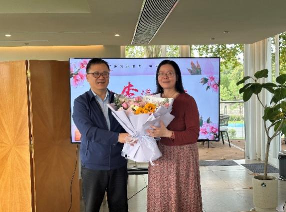 谢小苑老师分享了在学院工作的体会和感悟,向青年教师们传授经验并提出殷切希望。学院教师纷纷发言,分享与谢老师共事的点滴。学院和大学外语教学部共同为谢老师献上鲜花和纪念品,表达感谢和祝福。