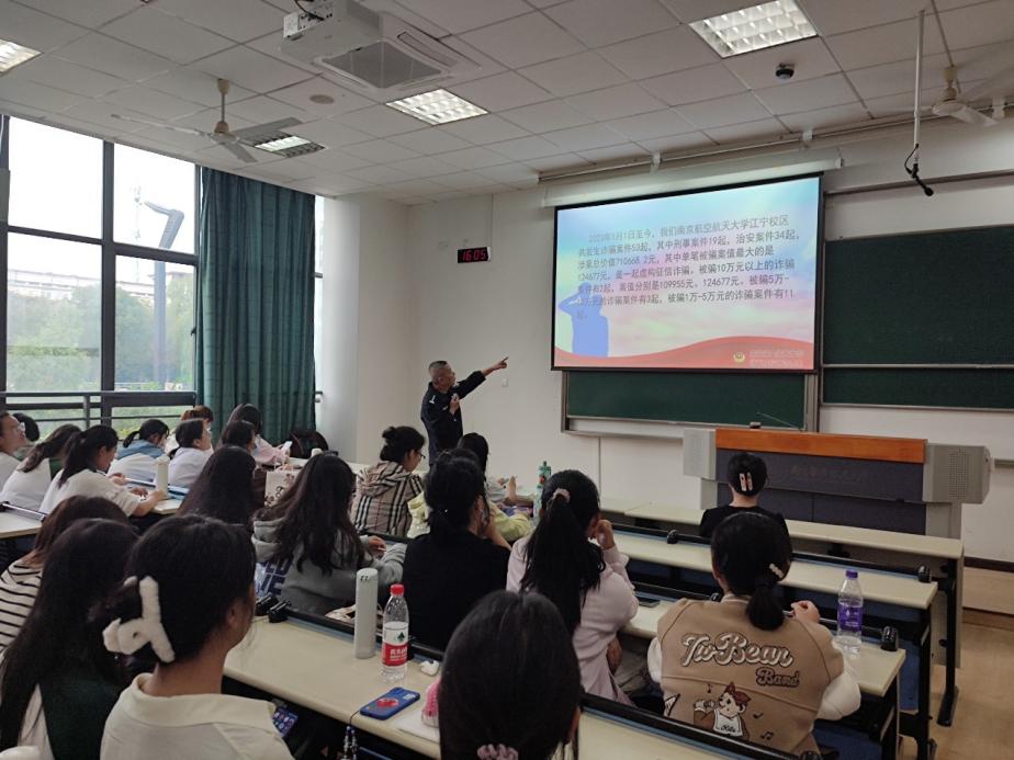 针对近年来电信网络诈骗高发的现状,为进一步提升学院学生的自我保护意识、防范意识,预防网络电信诈骗,切实保护自身财产信息安全,10月19日,星空影院 开展了防范电信网络诈骗专题宣讲活动。活动邀请了江宁公安分局开发区派出所驻南航警务室娄军来警官担任主讲人,星空影院 团委书记李萍、本科生研究生学生代表参加本次活动。