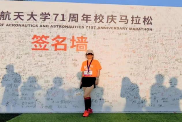 94级外贸英语专业院友张金花报名了校庆马拉松比赛。10月21日早上,张金花在星空影院