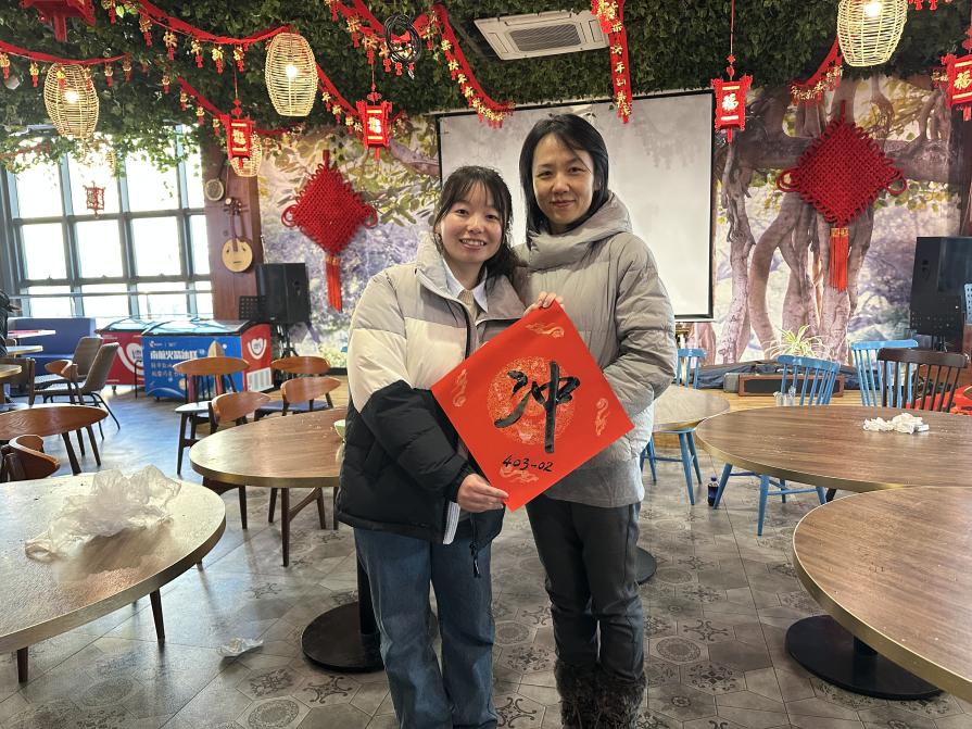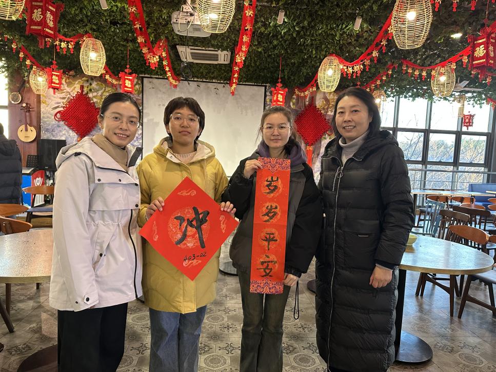 随后,王孝存老师与同学们共同创作春联。为鼓励同学们在学院优良学风建设平台上勇攀学习高峰,师生共同写下寓意深刻的春联——“攀登必胜展宏图,同舟共进御长风”,象征着师生同心同向同行,承载了老师对同学们学习与生活更上一层楼的祝福。