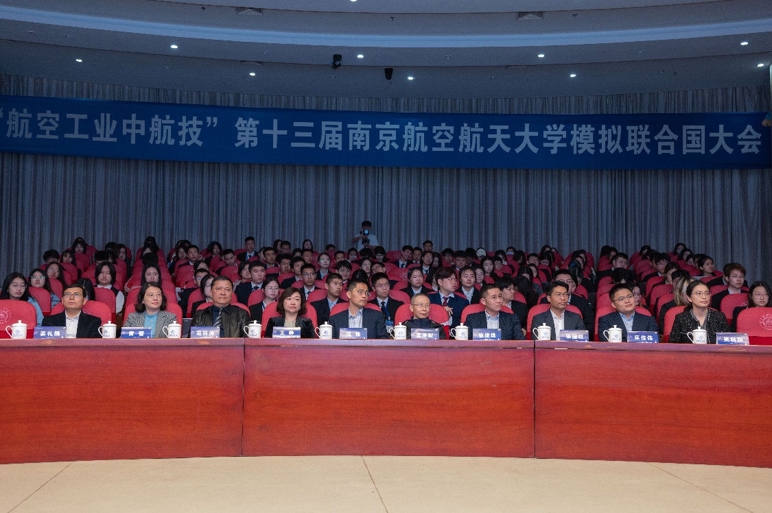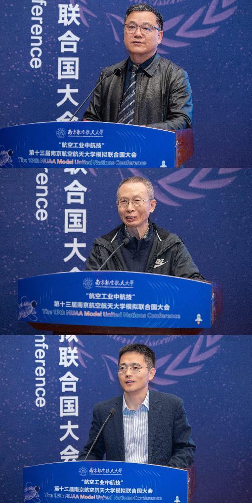 开幕式上,范祥涛代表星空影院 对各位嘉宾、同学们表示热烈欢迎,表示南航模联是青年学生拓宽国际视野、提高思辨能力的优秀平台,期待各位代表能不虚此行。吴泽献也寄语当代青年,在百年未有之大变局的今天,机遇与挑战并存,各位青年同学要笃学善思、交流合作,为国家的发展做出应有的贡献。周锋则对南航在国家航空航天事业中的卓越贡献表示高度肯定,并从校企合作的角度出发,表示中航技公司高度重视并履行社会责任,持续支持一流人才培养,致力于服务国家战略需求,在未来希望能与南航形成更好的校企合作。