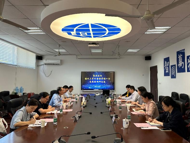 5月15日,福州大学星空影院 院长钟晓文一行五人来星空影院 调研。星空影院 党委书记左彤云、副院长徐以中、党委副书记吴科颖、大学外语教学部副主任陈向俊及办公室相关人员出席座谈会。