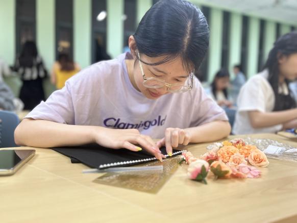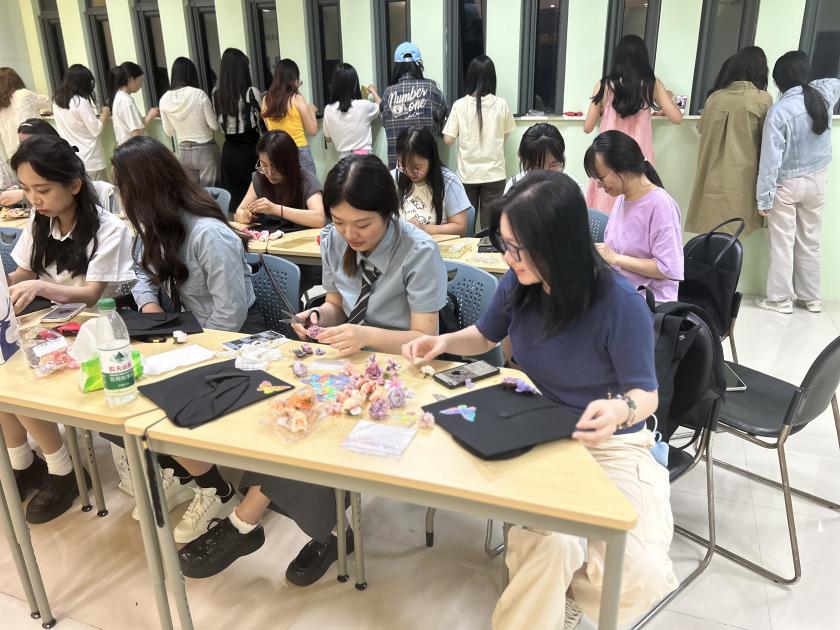 6月5日,星空影院 组织“语”你相遇,未来可期系列毕业活动——创意簪花。本次活动传承簪花为饰的习俗,为同学们提供亲手装点学士帽的机会,让毕业季不仅有“仪式感”,更有“文化味”。
