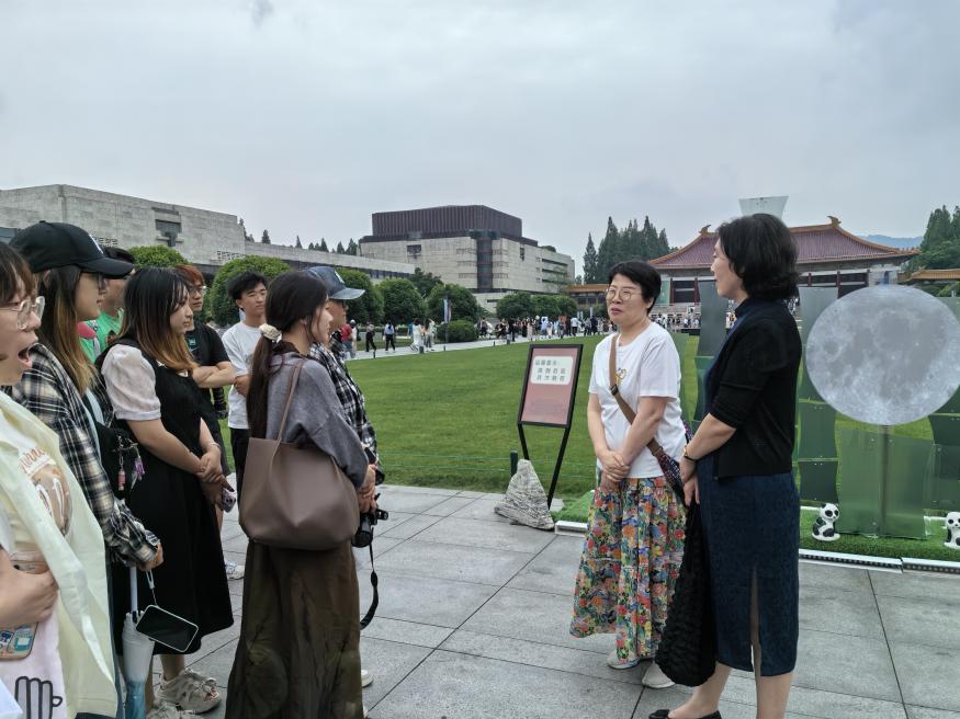 路老师退休后在南京博物院担任志愿讲解员,热情与智慧丝毫不减。在路老师的带领下,同学们共同参观了南京博物院,寻访中华文明,探寻历史足迹。路老师为同学们详细讲述了博物馆内珍贵文物背后的故事,与同学们分享了她丰富的历史知识和志愿服务经历,激发了同学们对中华文明的热爱和对历史的敬畏之情。左彤云、吴科颖与团支部的少数民族同学开展了深入交流,了解同学们的家庭情况与在校学习生活状况,鼓励同学们树立目标、开阔视野、制定规划、奋发向上,自觉维护民族团结,把个人理想融入党和国家发展的事业当中。