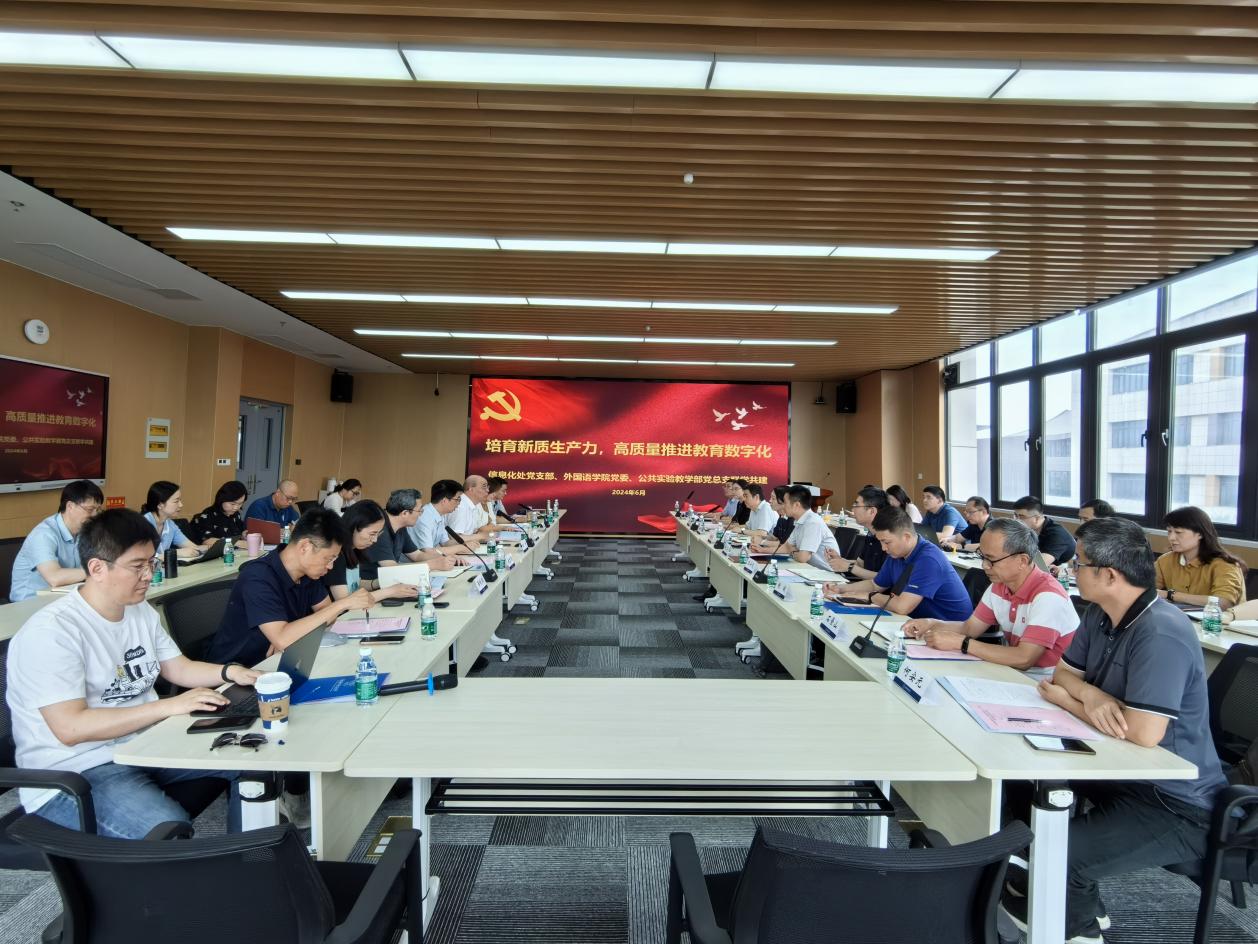 6月12日,信息化处党支部、星空影院 党委、公共实验教学部党总支在天目湖校区围绕“培育新质生产力,高质量推进教育数字化”主题开展联学共建活动。信息化处、星空影院 、公共实验教学部班子成员,所属系部、中心主要负责同志,科级干部及教师代表参加了学习,会议由公共实验教学部党总支书记张庆主持。