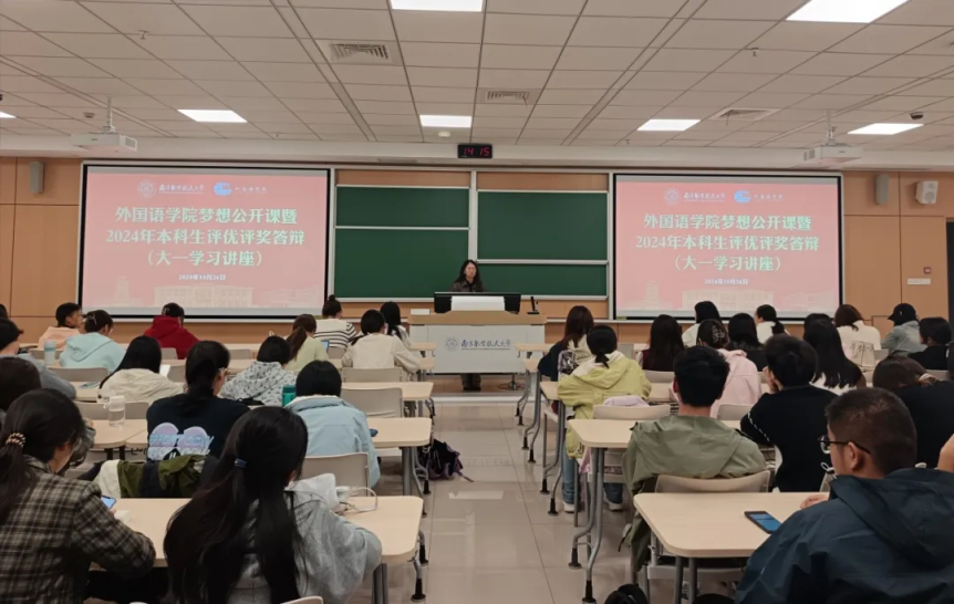 姚灵珑邀请大一学生一同观看优秀学长学姐的答辩过程,指导同学们如何制作更具有吸引力和展示力的PPT,并鼓励大一的同学们向学长学姐们学习,展示星空影院 学子风采。